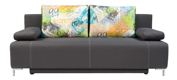 3-sed Kinga je univerzálny, kompaktný a vhodný do malých priestorov. Veselým vzorom na vankúšoch sa hodí najmä do detských a študentských izieb, ale moderným prvkom aj v izbe obývacej alebo kancelárii. Dekoratívne šitie zvyšuje estetický nádych nábytku. Zaujímavým riešením sú obojstranné vankúše, kde z jednej strany sú so vzorom a zo strany druhej vo farbe sedačky. Jemné nohy s kovovým leskom zdôrazňujú moderný dizajn nábytku. Pomocou systému Automat trojsed jednoduchým pohybom rozložíte, čím vznikne plocha na spanie. V úložnom priestore môžete skladovať deky, vankúše a prikrývky.