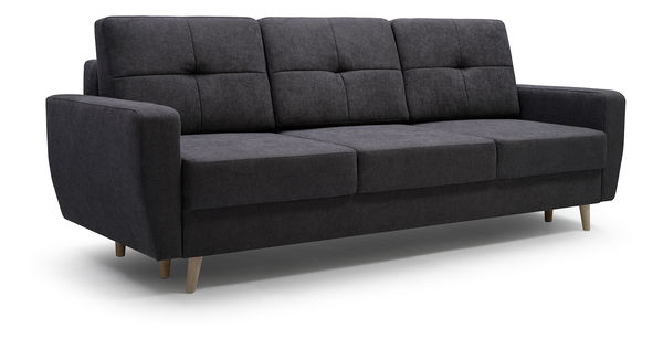 Pohovka trojsedačka Buenolo (čierna) s výškou 90 cm a hĺbkou 92 cm je ideálnym produktom pre tých, ktorí hľadajú pohodlie a úľavu po náročnom dni. Okrem svojho moderného a jednoduchého dizajnu je možné ju získať v niekoľkých farbách, vďaka čomu si môžete vybrať tú, ktorá najlepšie zapadne do vašej miestnosti. Buenolo je vhodná do veľkých aj malých miestností a vďaka dreveným nohám sa hodí do každého interiéru. Je vybavená spacou plochou a úložným priestorom na posteľnú bielizeň alebo iné predmety, ktoré by sa inak nezmestili. Tkanina Primo je určená na výrobu čalúneného nábytku a má vysokú gramáž, vďaka čomu je odolná voči oderu a príjemná na dotyk. Test oderuvzdornosti Martindale potvrdzuje jej kvalitu. Výplň sedadla je z peny HR a pružiny faliste a výplň operadla je z peny HR a bonell. Výška lôžka je 44 cm, výška korpusu (zadnej časti) je 73 cm, výška sedu je 44 cm a hĺbka sedu je 57 cm. Pohovka má drevené nohy, rozkladacia je áno a má jedno úložné miesto. Plocha spania je 210x143 cm.