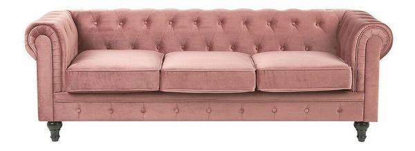 Táto 3-miestna pohovka sa vyznačuje elegantnou siluetou so širokými zaoblenými ramenami, ktorá je charakteristická pre dizajn Chesterfield a hodí sa do každého moderného alebo tradične zariadeného interiéru. Nízke operadlo, hrubé čalúnené sedadlo a nohy z kaučukového dreva ponúkajú ten najlepší komfort a stabilitu. Luxusné zamatové čalúnenie v ružovej farbe je zvýraznené klasickým prešívaním s gombíkmi. Táto anglická klasika sa ľahko udržiava a bude vyzerať úžasne v tradične zariadenom alebo modernom interiéri.