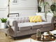 Táto pohovka v klasickom štýle Chesterfield dodá vášmu domovu eleganciu. Nadčasový dizajn pohovky je charakteristický prešívaným čalúnením s gombíkmi, tvarovanými nohami z eukalyptového dreva, zaoblenými bočnými opierkami a hrubými sedadlami, ktoré ponúkajú pohodlie a sofistikovaný vzhľad. Vďaka snímateľným poťahom na vankúšoch je čistenie prípadných škvŕn jednoduchšie. Tradičný dizajn s moderným nádychom robí z tejto pohovky nadčasový doplnok vášho domova.