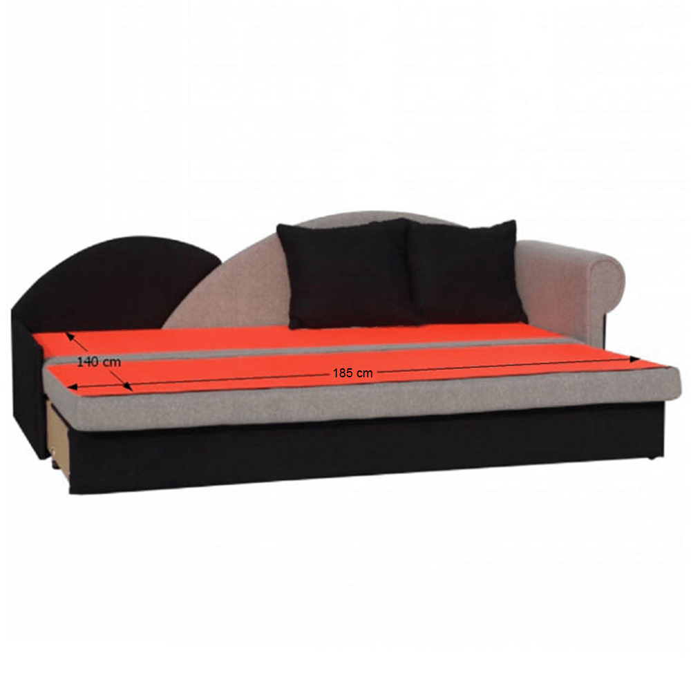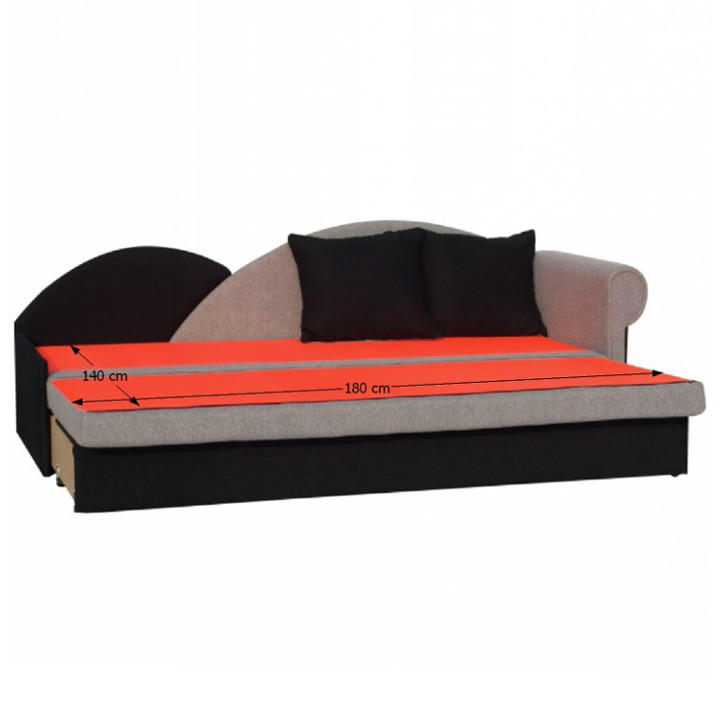 Pekný 3-sed sa hodí skorej do klasicky zariadenej obývacej izby, pracovne či študentskej izby. Je čalúnený šenilom Oslo 95 sivá v kombinácii so šenilom Oslo 100 čierna. Rozložením vzniká praktické dvojlôžko. Do veľkého úložného priestoru si môžete umiestniť vankúše alebo posteľné prádlo. Pravé prevedenie sedačky.