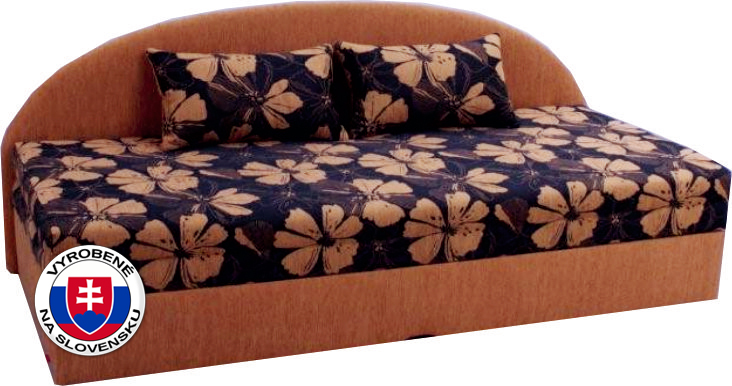 Rozkladacia sedačka, 3-sed, nájde svoje miesto ako v obývacej izbe, tak aj detskej či študentskej. Dá sa využiť aj na denné sedenie, poprípade po rozložení vznikne spacia plocha až pre dve osoby. Matrac je vyrobený z PUR peny. Je čalúnená šenilom medovej farby s kvetovaným vzorom.