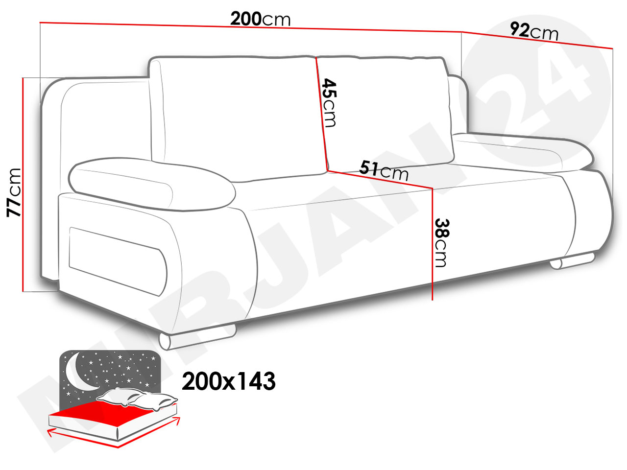 Rozkladacia pohovka Ernas je ideálna do modernej obývačky. Pohovka je určená pre 2 osoby, počas dňa je dobrým miestom na odpočinok alebo na prijímanie hostí a v noci bude slúžiť ako rozkladacia posteľ. Po rozložení na spanie má rozmery 143x200 cm, ktoré umožňujú na nej spať až dvom ľuďom.