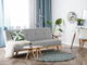 Táto trojmiestna pohovka je výborným riešením do menšej izby alebo do izby pre hostí. Minimalistický dizajn je zvýraznený jednoduchým prešívaním s gombíkmi a čalúnením v neutrálnej farbe. Svetlý odtieň nôh z kaučukového dreva pohovke dodáva nádych škandinávskeho štýlu. Vďaka rozkladaciemu mechanizmu možno túto pohovku veľmi jednoducho zmeniť na posteľ.
