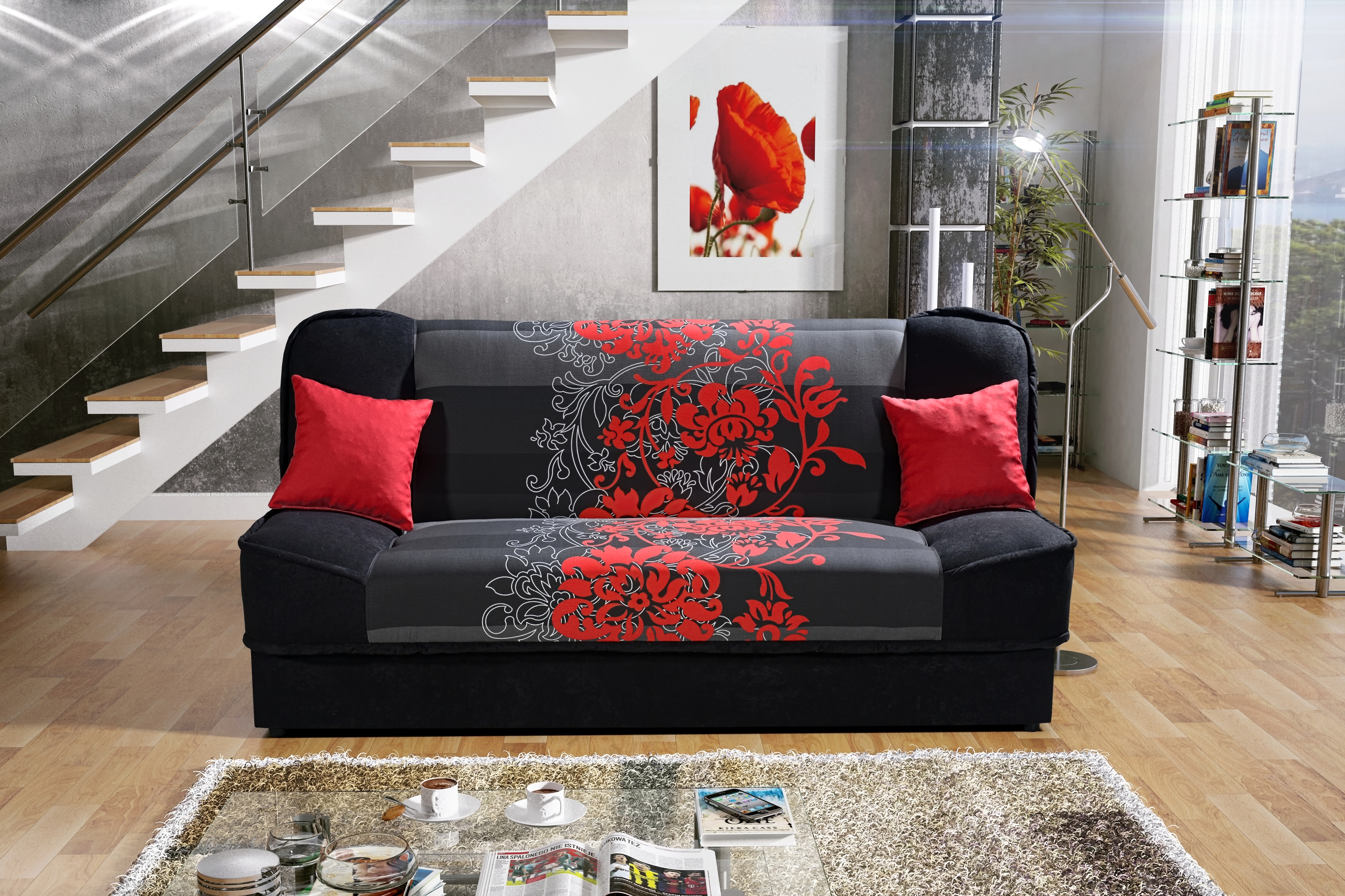 Pohovka trojsedačka Finka 3R (čierna + červený kvet) *výpredaj