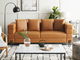 Táto 3-miestna pohovka dokonale spája moderný štýl a funkčnosť. Jej trendový dizajn v svetlohnedej farbe je doplnený elegantnými čiernymi nohami. Pohovka je čalúnená vysokokvalitnou umelou kožou, má hrubo vystuženú sedaciu časť a dodáva sa s extra vankúšmi pre najvyšší komfort sedenia. Vďaka odolnej preglejkovej konštrukcii vám bude slúžiť dlhé roky.