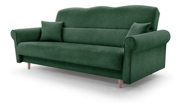 Pohovka trojsedačka Kallean (zelená) je vysoká 101 cm a má hĺbku 105 cm. Rám pohovky je vyrobený z masívneho dreva a drevotriesky, čo zaručuje pevnosť a stability. Sedacia časť je vybavená bonellovou pružinou s hrúbkou drôtu 2,4 mm a penou T 25 s hrúbkou 3 cm, čo zabezpečuje pohodlné sezení. Pohovka má podporný mechanizmus otvárania, a tak sa môže premeniť na plochu na spanie s rozmermi 183 x 133 cm. Typ rozkladu je klik-klak. Pohovka je vybavená drevenými nohami, ktoré dodávajú estetický vzhľad. Tento produkt je ideálnou voľbou pre tých, ktorí hľadajú kvalitnú, pohodlnú a praktickú pohovku do svojho interiéru.