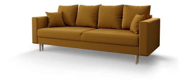 Tento kúsok nábytku je nielen funkčný, ale aj vizuálne príťažlivý – horčicová farba dodáva priestoru teplý a útulný nádych, ktorý sa hodí do rôznych štýlov interiéru, od škandinávskeho minimalizmu až po industriálny alebo retro dizajn. Pohovka je celočalúnená a doplnená o štyri veľké opierkové a dva menšie dekoračné vankúše s výplňou z frézovanej peny, ktoré zvyšujú komfort a zároveň umožňujú jednoduchú údržbu vďaka zipsom.