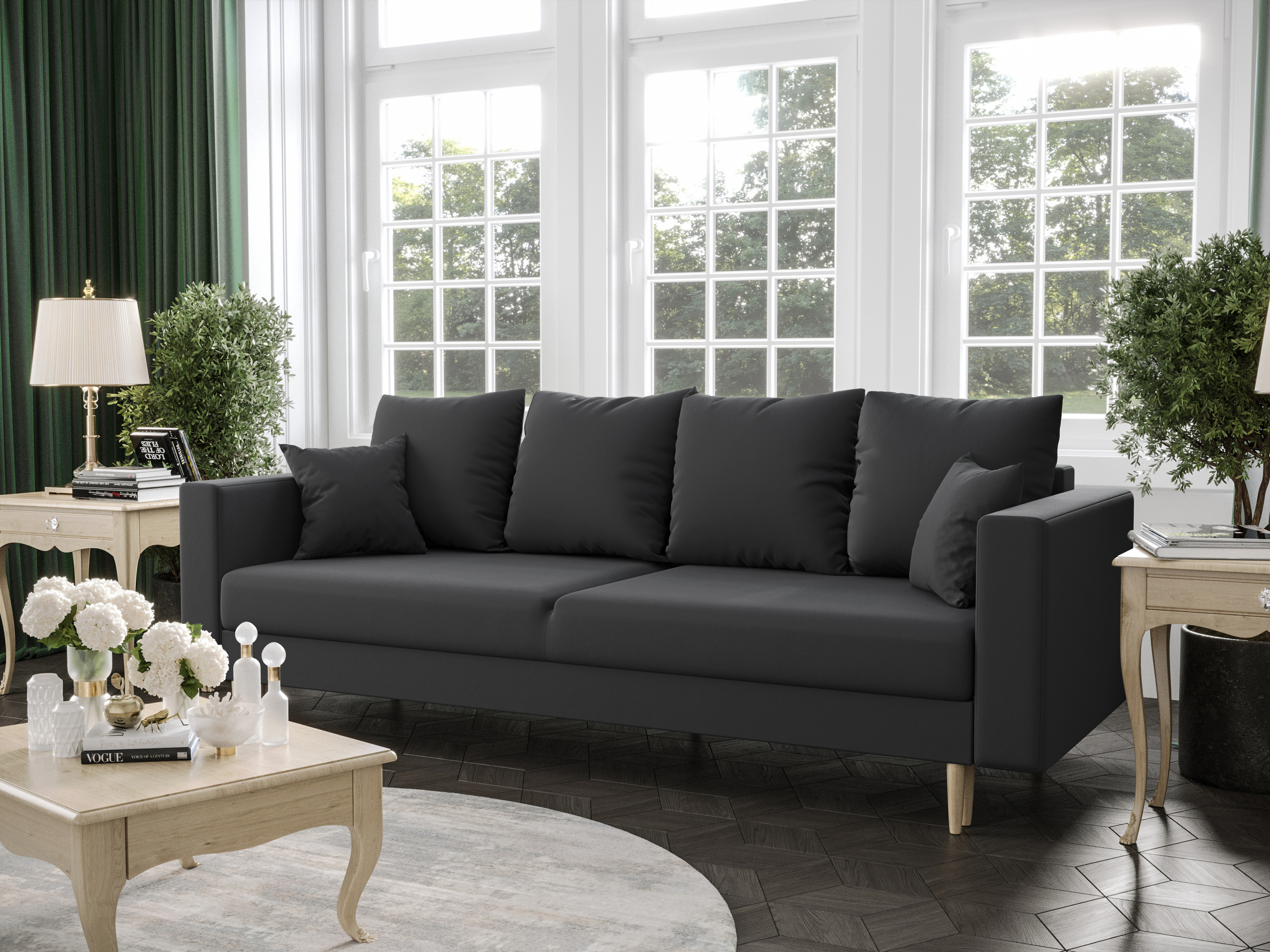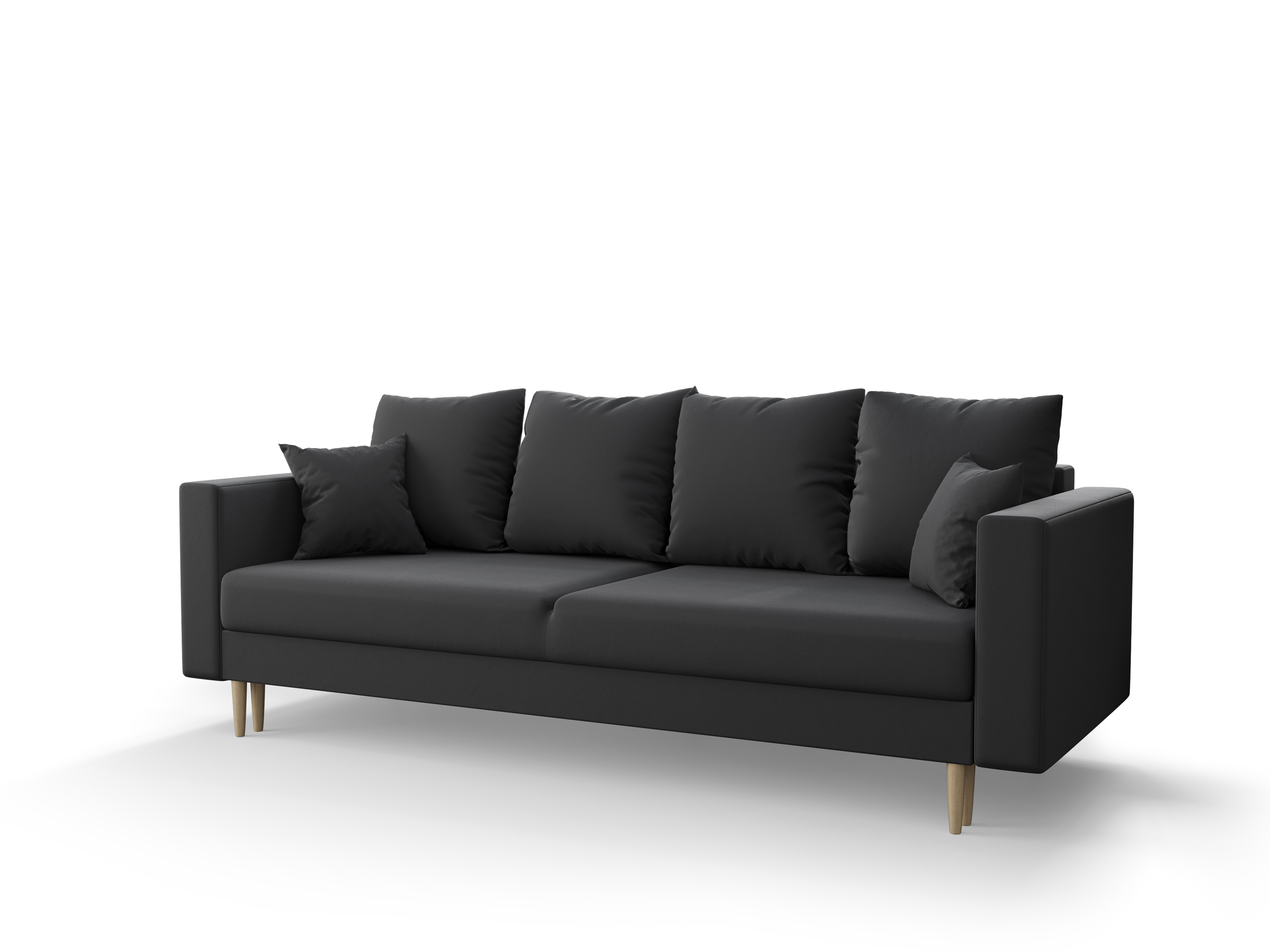 - Drevený rám a nožičky dodávajú pohovke stabilitu a prirodzený vzhľad, ktorý ľahko zapadne do rôznych štýlov interiéru – od minimalistického cez škandinávsky až po industriálny.