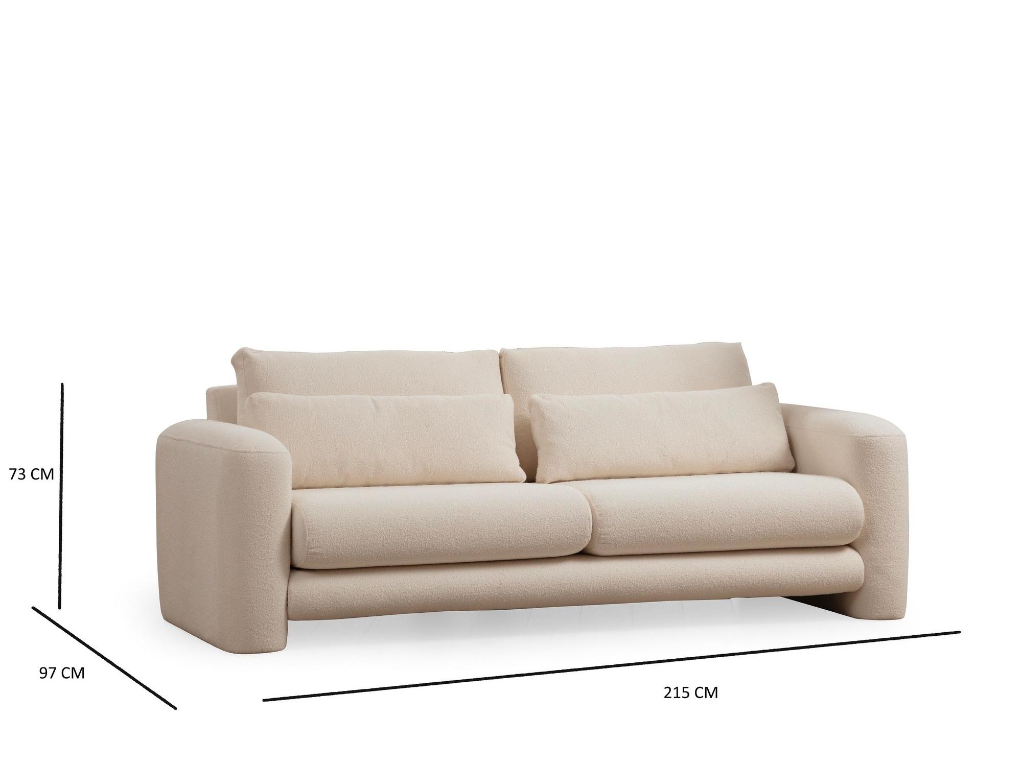 Táto krémová trojsedačka Lelysena je ideálnym doplnkom pre každý moderný obývací priestor, ktorý oceníte pre jej pohodlie a nadčasový dizajn. Kombinácia pevného bukového dreva a drevotriesky v ráme zaručuje stabilitu a dlhú životnosť nábytku. Sedadlá a operadlá sú vyplnené kvalitnou penou rôznej hustoty (28 DNS jemná sivá pena, 24 DNS Feather, 60 % rezaná pena a 40 % silikónová pena), čo poskytuje optimálnu oporu a zároveň príjemný pocit mäkkosti. Voľne odnímateľné vankúše umožňujú jednoduchú údržbu a prispievajú k variabilite usporiadania podľa vašich potrieb.