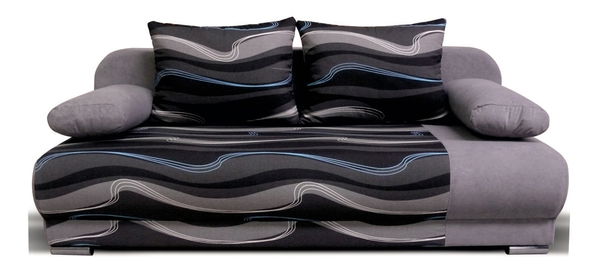 Moderná sedačka, 3-sed, je vhodná do menšej obývacej, detskej či študentskej izby. Čalúnenie je z kombinácie mikrofázy a bavlny so vlnkovitým vzorom. Obsahuje vankúšiky na opretie rúk aj chrbta. Nohy sú kovové a dokonale dopĺňajú dizajn sedačky. Systém automat zaručuje rýchle a jednoduché rozloženie. Pohodlne sa na nej vyspia aj dve osoby. Na umiestnenie vankúšov a posteľného prádla slúži úložný priestor.