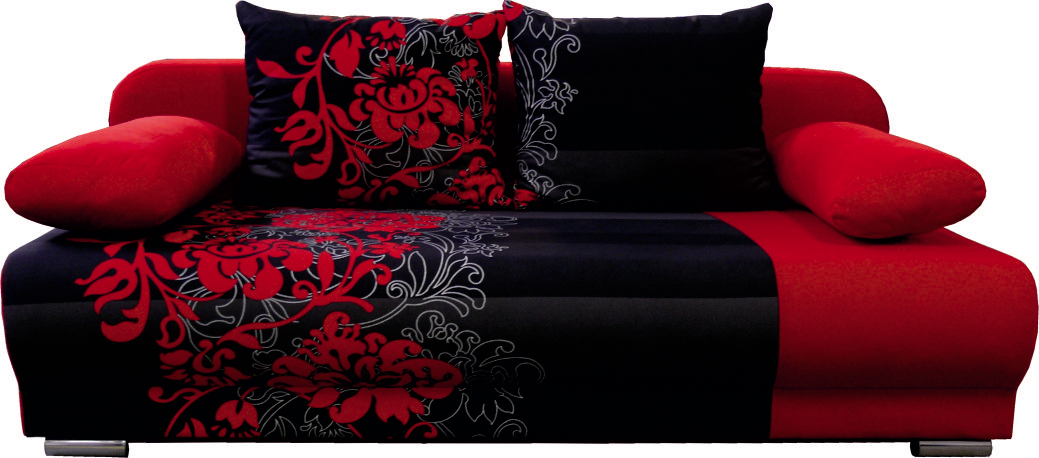 Moderná sedačka, 3-sed, vyniká krásnym kvetinovým vzorom. Obývacia izba už nebude naďalej všedná. Červenočierne čalúnenie z mikro/bavlna pekne ladí s kovovými nohami. Na sedačke sa dá prespať. Systém automat zaručuje rýchle a jednoduché rozloženie. Potrebné veci ako napríklad posteľné prádlo umiestnite do úložného priestoru.