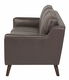 Elegantná pohovka s čalúnením z kvalitného polyesteru v dokonalej imitácii kože. Hrubé čalúnené sedadlá so snímateľnými poťahmi a dvojité bočné opierky zaručujú príjemný komfort a dizajn pohovky v štýle mid-century zvýrazňujú šikmé nohy z dubového dreva. Táto trojmiestna pohovka je dobrou voľbou do interiérov so zariadením v tradičnom a modernom štýle a možno ju skombinovať s ďalšou pohovkou z rovnakej kolekcie. Ak však túžite po eklektickom dizajne, doplňte ju kreslami v odlišnom štýle.