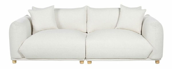 Pohovka v elegantnej krémovobielej farbe, ktorá je čalúnená odolným polyesterovým materiálom, pôsobí sofistikovane a zároveň vám ponúka útulné a pohodlné miesto na oddych. Krátke nohy z kaučukového dreva poskytujú stabilný základ a nechávajú vyniknúť hlboké a široké sedadlo, ktoré priam láka k odpočinku. Extra vankúše rovnakej farby dopĺňajú vzhľad pohovky a postarajú sa o pohodlie a luxusný zážitok z relaxácie. Ponorte sa do mäkkých vankúšov a na chvíľu zabudnite na starosti každodenného života.
