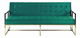 Vďaka tejto očarujúcej pohovke bude vaša obývačka vyzerať ako z obálky časopisu o interiérovom dizajne. Siluetu pohovky zvýrazňuje jemné zamatové čalúnenie doplnené úhľadným prešívaním, ktoré mu dodáva nádych dekadentného štýlu. V kombinácii s jednoduchým zlatým rámom v lesklom prevedení sa stane nádherným stredobodom každého interiéru. Výnimočnosť tejto pohovky presahuje jej luxusný vzhľad, pretože vďaka sklopnému operadlu poslúži aj ako posteľ. Táto trojmiestna pohovka bude najelegantnejším a najfunkčnejším kusom nábytku vo vašom interiéri.