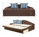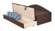 Praktický 3-sed vhodný do študentskej izby je čalúnený látkou Alova v kombinácii so vzorovanými vankúšmi. Povytiahnutím spodnej časti vysuniete úložný priestor a preklopením jedného matraca získate praktické dvojlôžko.