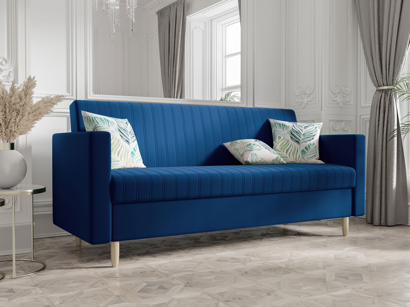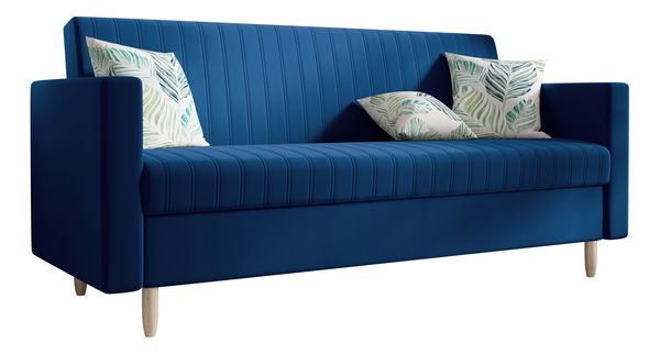 Trojsedačka Meadow v modrom odtieni je riešením pre váš obývací priestor, ktoré spája moderný dizajn s praktickými vlastnosťami. Vďaka rozmerom 216 x 80 cm a výške 98 cm poskytuje dostatok miesta na pohodlné sedenie pre celú rodinu alebo návštevu. Jej pevná konštrukcia z dreveného rámu a drevotriesky zaručuje dlhú životnosť, zatiaľ čo výplň z polyuretánovej peny T30 a Bonell pružín prináša optimálnu oporu a komfort.