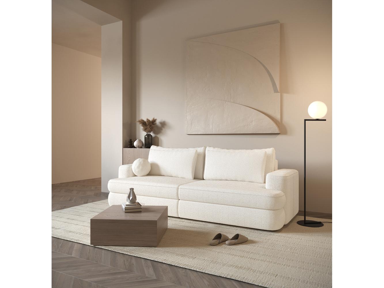 Máte radi pobyt v minimalistických interiéroch? Chcete, aby vám nábytok poskytoval pohodlie a ľahko sa ovládal? Vyskúšajte trojmiestnu sedačku Trojmiestna sedačka je perfektnou voľbou pre milovníkov jednoduchosti a moderného dizajnu. Vďaka svojmu jednoduchému, ale elegantnému dizajnu sa perfektne hodí do minimalistických interiérov a dodáva jemný, ale rafinovaný akcent. Na výber sú dve vysokokvalitné látky: výnimočne mäkká a na dotyk príjemná boucle látka a odolná, ľahko čistiteľná ženilková látka. Vďaka tejto možnosti si každý môže prispôsobiť pohovku podľa svojho individuálneho vkusu a štýlu interiéru. Sedačka je vybavená 5 dekoračnými vankúšmi, ktoré plnia nielen estetickú funkciu, ale poskytujú aj dodatočné pohodlie pri odpočinku. Ich rôzne vzory a farby vám umožňujú prispôsobiť si pohovku podľa vlastných preferencií. Funkcia spánku DL je praktickým riešením, ktoré vám umožní rýchlo premeniť pohovku na pohodlné lôžko. Ideálna voľba pre hostí alebo tých, ktorí oceňujú flexibilitu pri usporiadaní priestoru. Ďalšou výhodou pohovky je úložný priestor na posteľnú bielizeň, ktorý vám umožní uložiť prehozy, paplóny alebo vankúše bez potreby ďalšieho priestoru na ich uloženie. Sedák využíva pružiny Bonnell, čo zaručuje nielen pohodlie, ale aj odolnosť pohovky. Vďaka nim sa sedačka prispôsobí tvaru tela, poskytuje optimálnu oporu a relax aj pri dlhodobom používaní. Hľadáte niečo väčšie? Určite si prezrite našu rohovú pohovku z rovnakej kolekcie Podrobnosti o produkte: voľne stojaci model (s čalúneným operadlom), ľahko použiteľná funkcia na spanie DL, praktický úložný priestor na posteľ v štandarde, pružiny Bonnell v sedadle, hustota peny! : T30, vrátane 5 vankúšov, vrátane jedného v tvare gule, kus nábytku čalúnený látkou Catch Me 01 krémovej farby, Catch Me je mäkká ženilková látka s bukovitou textúrou z ozdobne točenej priadze s uzlíkmi a slučky pripomínajúce ovečku. Materiál je odolný voči roztrhnutiu, odlupovaniu, svetlu a treniu, vďaka čomu je ideálny na čalúnenie každodenného nábytku. Tkanina spomaľujúca horenie.