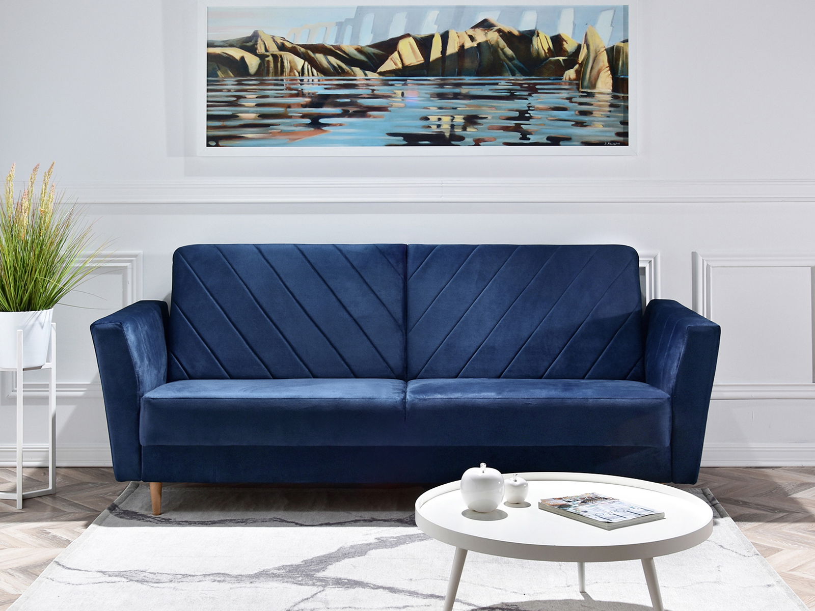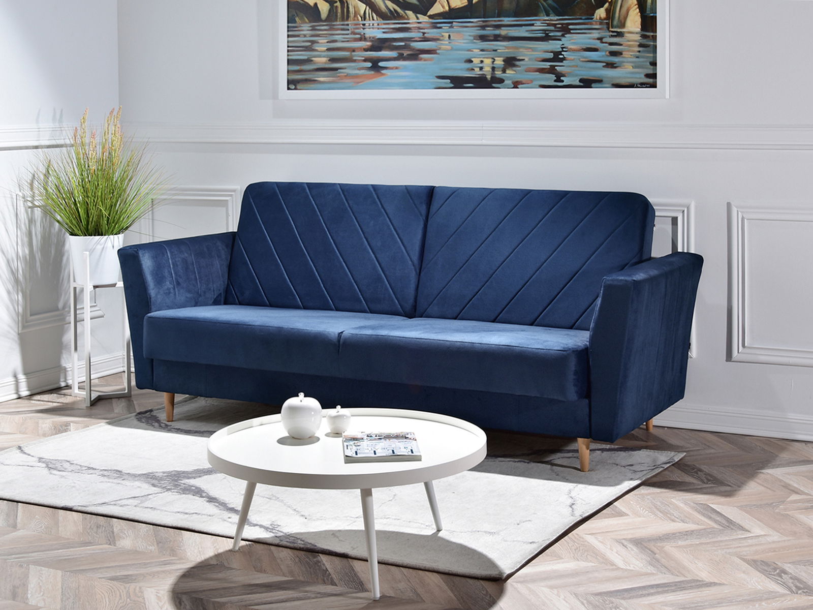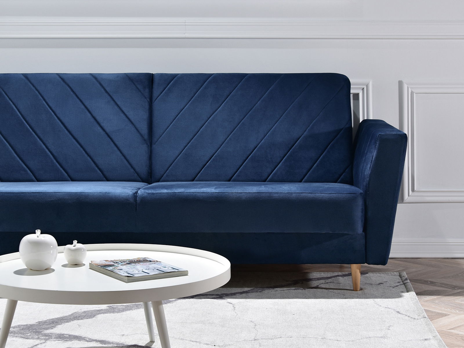 Pohovka trojsedačka Michel (tmavomodrá + buk)