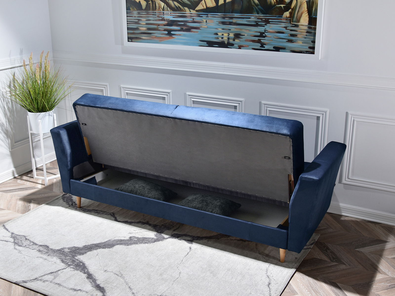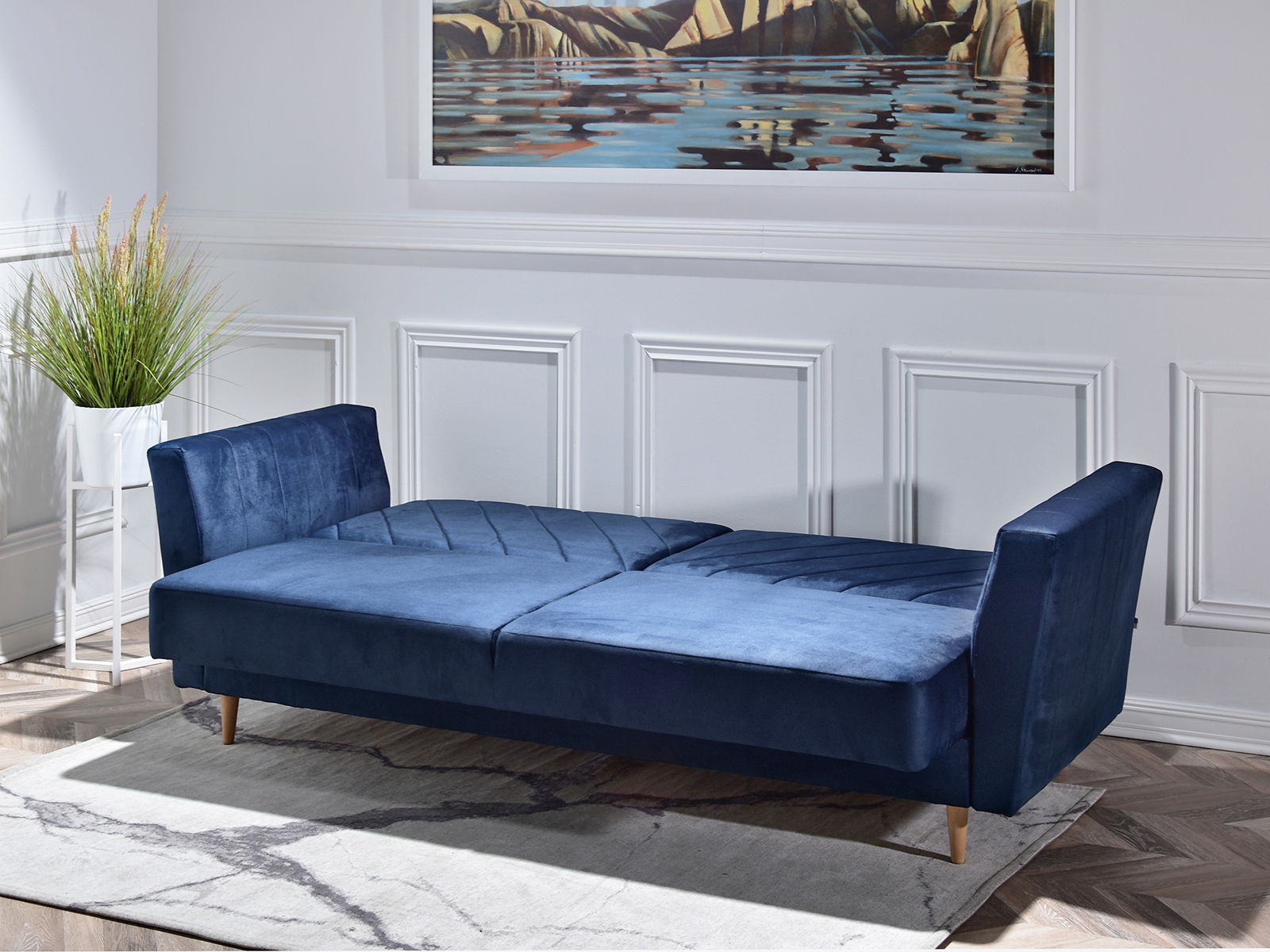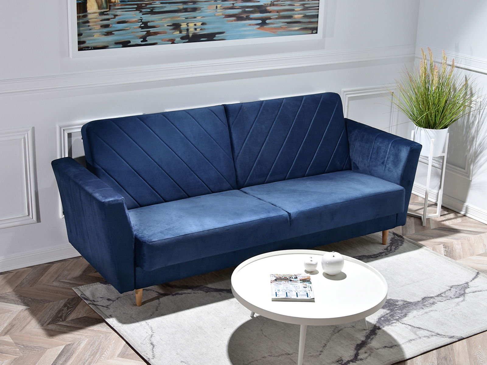 Pohovka trojsedačka Michel (tmavomodrá + buk)