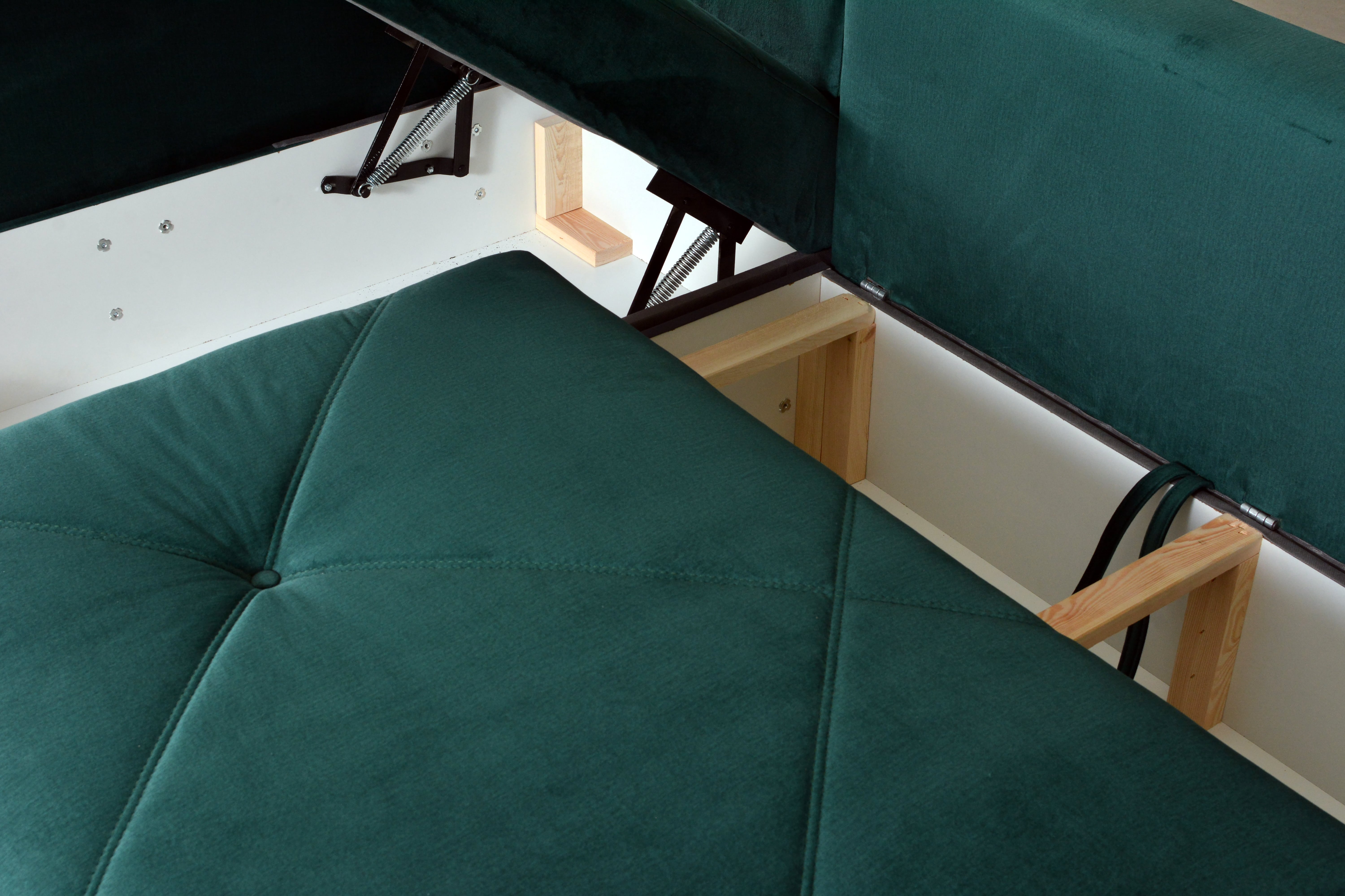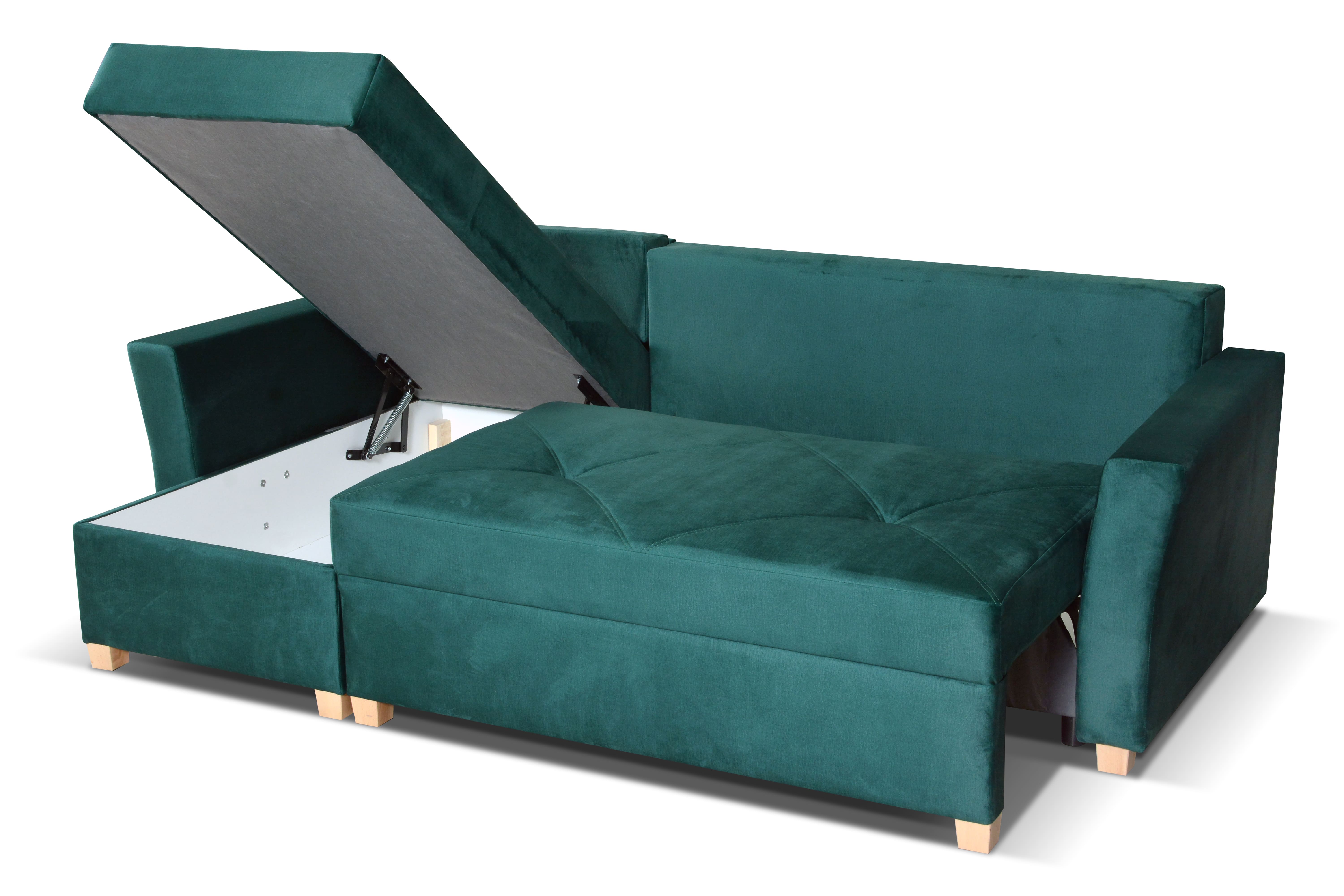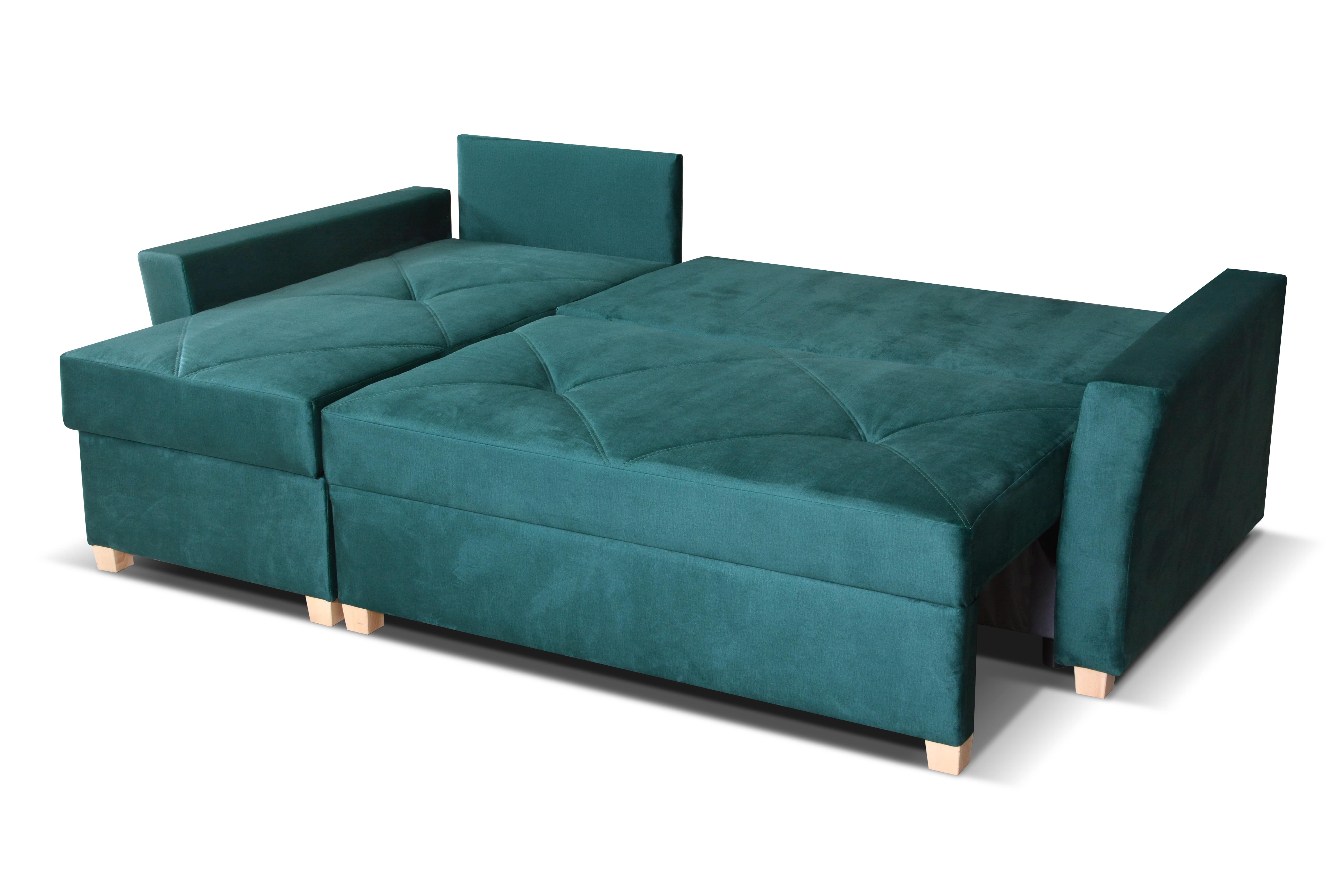Vďaka rozkladacej funkcii typu DL sa pohovka jednoducho premení na pohodlné lôžko s rozmermi 204 x 126 cm, ideálne pre príležitostné prespanie hostí. Praktickým doplnkom sú dva úložné priestory, ktoré pomôžu udržať poriadok v interiéri.