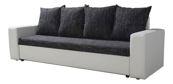 Pohovka trojsedačka Monarda (čierna + biela) s výškou 86 cm a hĺbkou 83 cm je ideálna pre vašu obývačku. Je vyrobená z ekokože a hrubšej štruktúrovanej tkaniny v dvojfarebnej kombinácii. Štyri veľké vankúše na chrbtovej časti pridávajú pocit útulnosti. Sedačka má rozložiteľnú konštrukciu a úložný priestor, ktorý je nenápadne ukrytý v zadnej časti. Konštrukcia je vyrobená z masívneho dreva, drievotriesky a preglejky. Výplň sedačky je z polyuretánovej peny s hustotou 25 kg/m³ - T2544. Plocha spania je 195 x 138 cm s výškou sedenia 40 cm. Hĺbka sedenia s vankúšmi je 58 cm a bez vankúšov 70 cm. Výška pohovky bez vankúšov je 76 cm. Tkanina Kornet, z ktorej je vyrobená pohovka, je husto tkaná látka so štruktúrou a melírovaným efektom. Je nanáročná na údržbu a zloženie je 90% polyester, 10% akryl. Test oderuvzdornosti Martindale je 40 000 cyklov. Ekokoža Mandarin MA, ktorá tvorí časť sedačky, je kvalitnou imitáciou pravej kože a vhodná pre každodenné použitie. Materiál môžete umývať jemne navlhčenou handričkou. Zloženie je 100% polyuretán a test oderuvzdornosti Martindale je 30 000 cyklov. Pohovka sa dodáva v dvoch balíkoch: Balík 1: 57x87x198 cm - 70 kg a Balík 2: 62x43x87 cm - 19 kg.