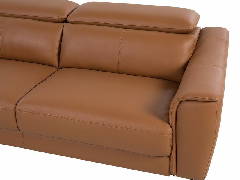 Táto elegantná kožená pohovka je vďaka mnohým výhodám, ktoré ponúka, perfektnou voľbou do akejkoľvek obývacej izby. Všetky časti, ktoré prichádzajú do kontaktu s pokožkou sú vyrobené z pravej štiepanej kože, zatiaľ čo ostatné časti sú čalúnené umelou kožou. Pohovka je navrhnutá tak, aby vám poskytla ten najlepší komfort. Sedacia časť má opierku hlavy, ktorá sa dá nastaviť do 6 rôznych polôh, hlboké sedadlá a čalúnenie, ktoré sa ľahko udržiava. Zahnuté kovové nohy dodávajú pohovke ľahkosť a príjemne dopĺňajú krásny zlatohnedý odtieň čalúnenia a tvar pohovky. Táto pohovka zvýrazní vzhľad akéhokoľvek interiéru v modernom, retro alebo boho štýle.