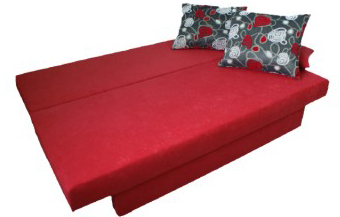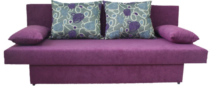 Pekná rozkladacia sedačka, 3-sed, využijete na oddychovanie v obývacej, detskej či študentskej izbe. Fialové čalúnenie je doplnené o vzorované vankúšiky. Matrac je vyrobený z molitanu. Jednoduchým pohybom sedačku rozložíte, čím vznikne spacia plocha až pre dve osoby. Úložný priestor poskytuje miesto na uloženie posteľného prádla.