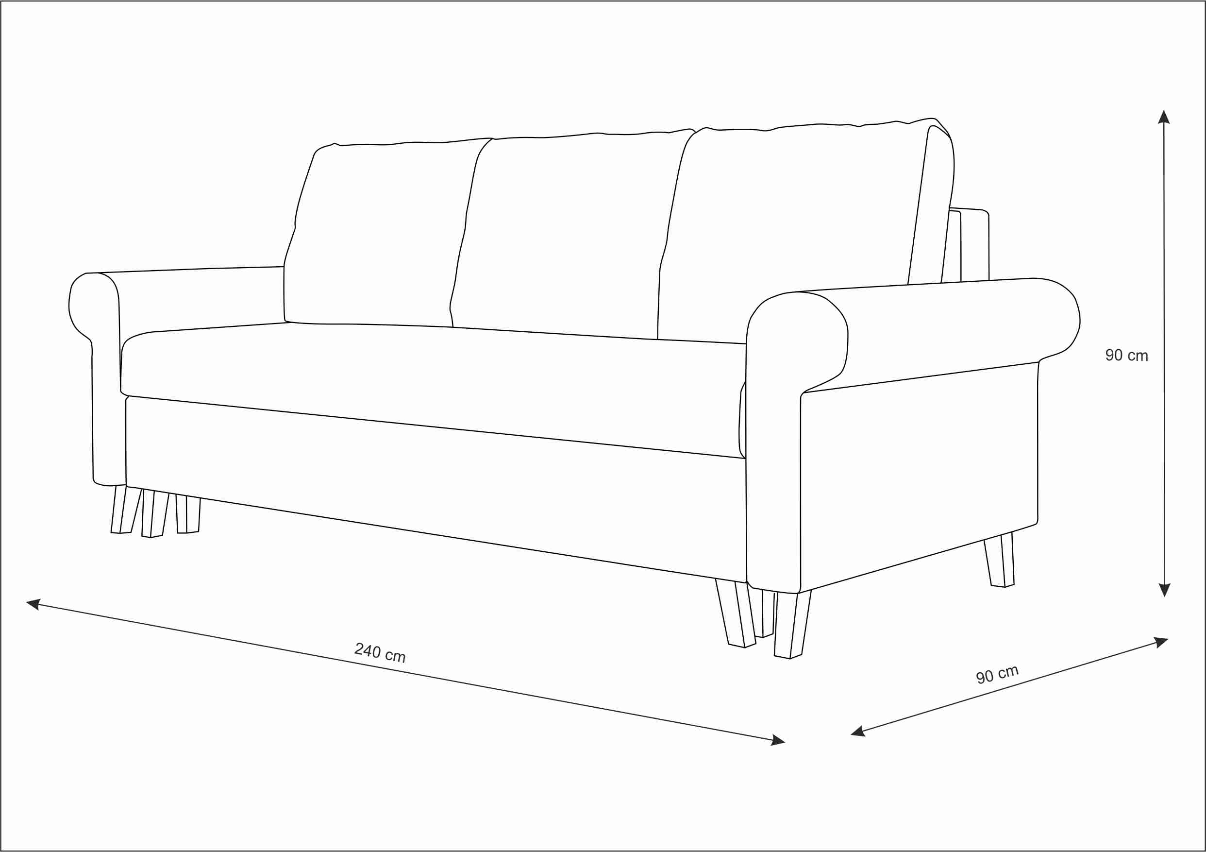 Elegantný dizajn s pekne tvarovaným operadlom a drevenými nožičkami v bukovom prevedení dodáva sedačke nadčasový vzhľad, ktorý ľahko zapadne do moderných aj klasických interiérov. Tri veľké opierkové vankúše so zipsom umožňujú jednoduchú údržbu a prispievajú k celkovému komfortu.