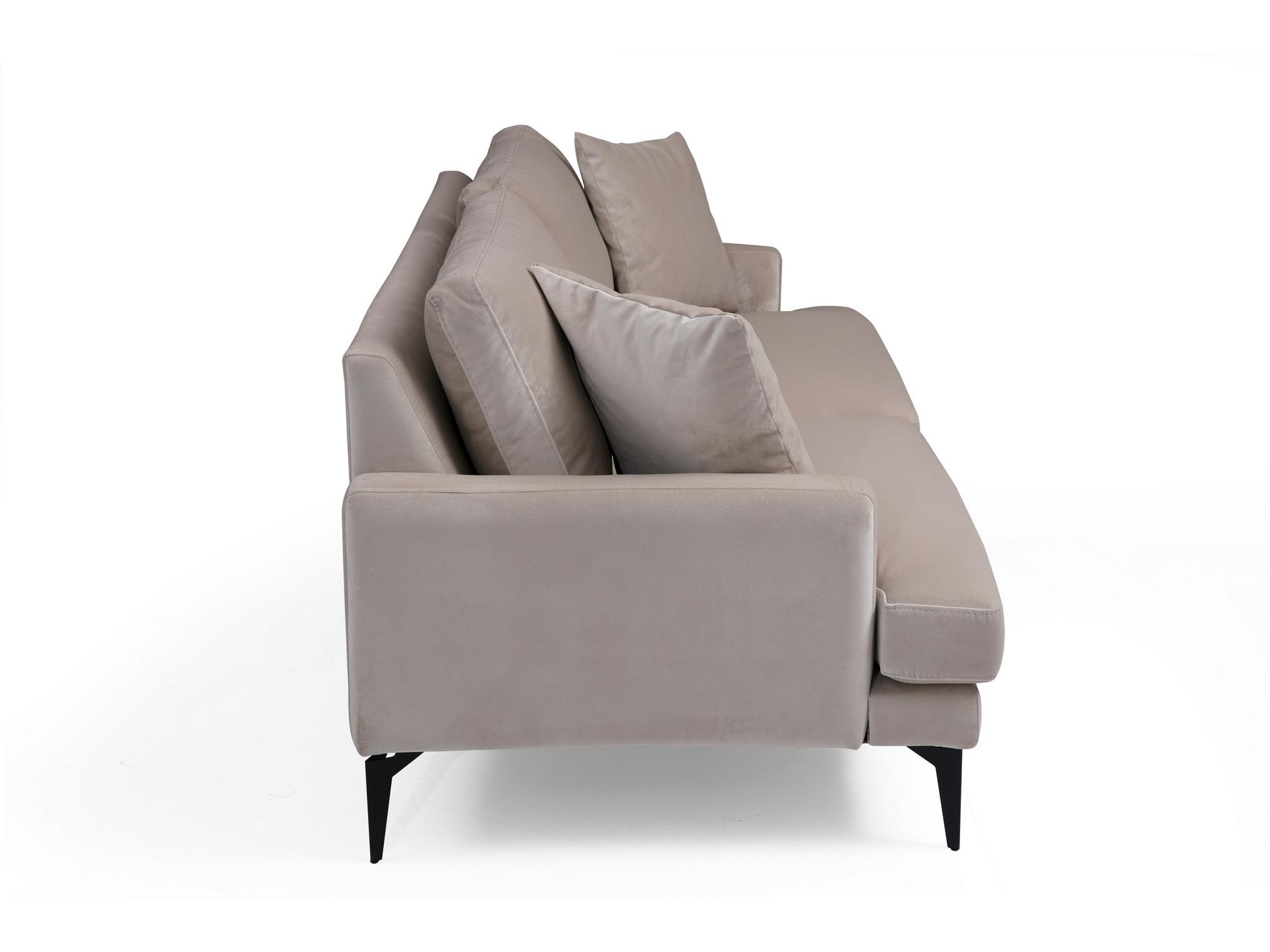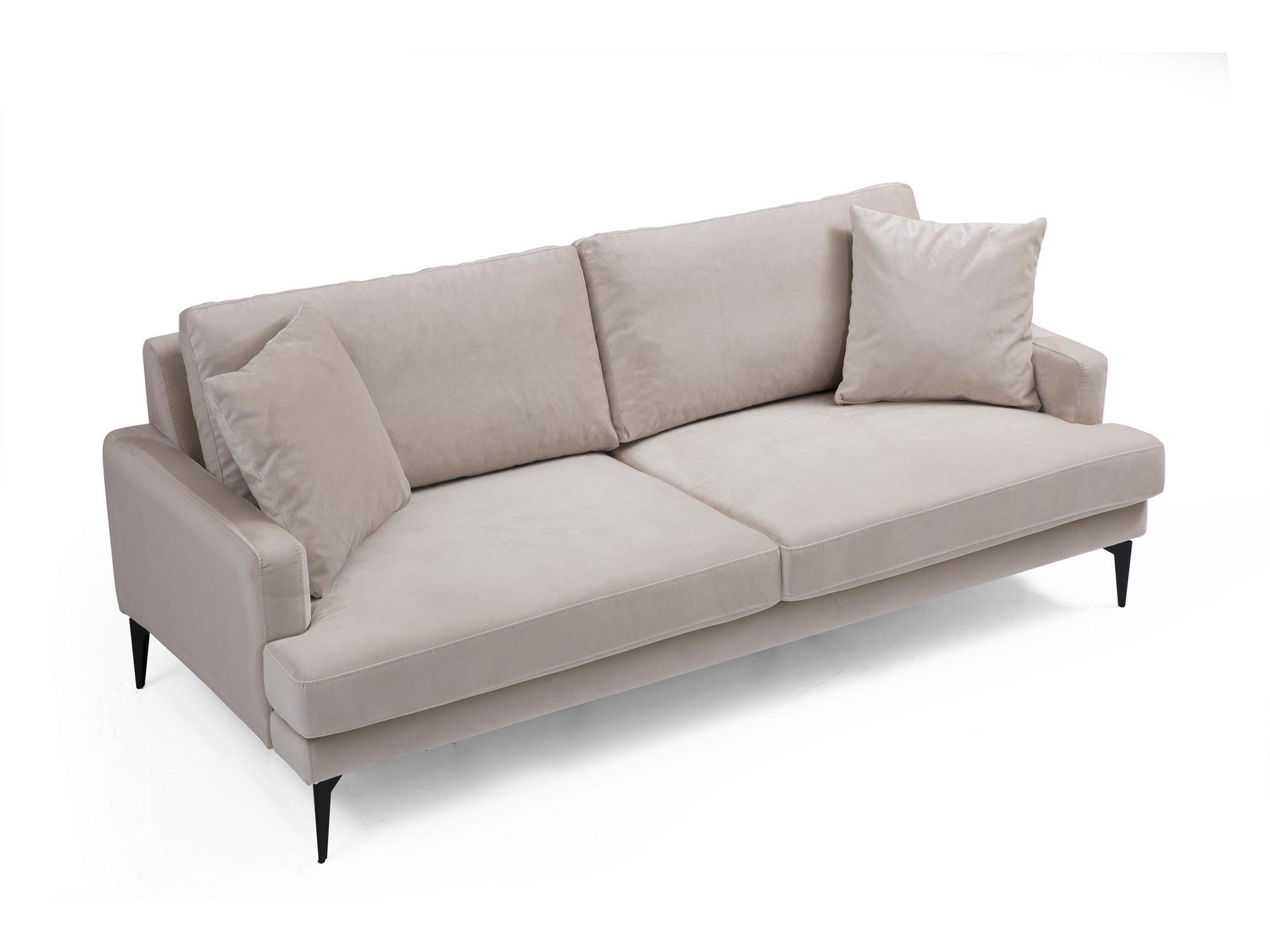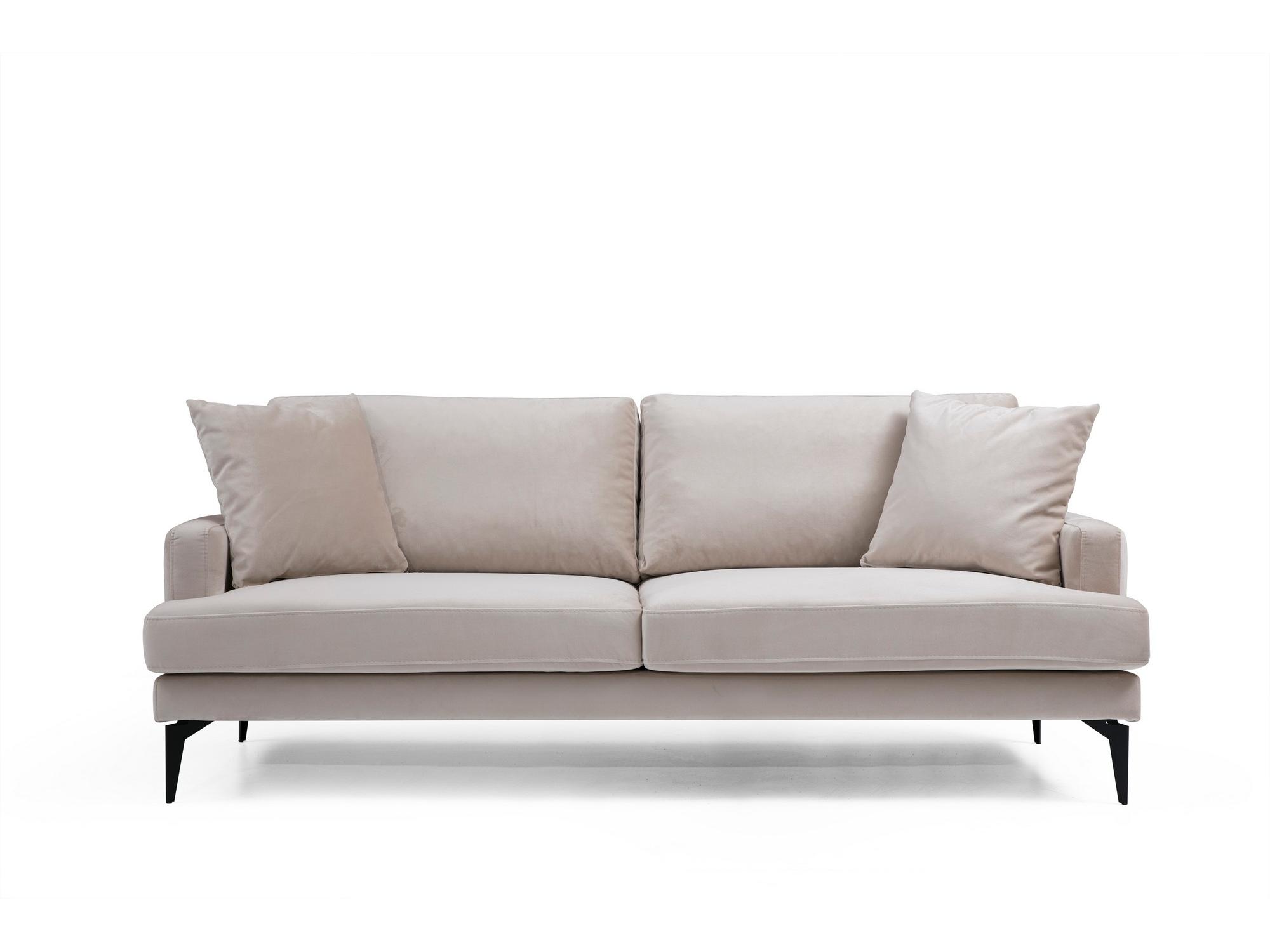 Táto trojsedačka Papirolla v jemnej béžovej farbe s čiernymi kovovými nohami je ideálnym doplnkom pre každý moderný obývací priestor. Kombinácia bukového dreva a drevotriesky v ráme zaručuje pevnosť a dlhú životnosť nábytku, zatiaľ čo 100% polyesterová tkanina poskytuje príjemný a odolný povrch, ktorý sa ľahko udržiava suchým čistením.