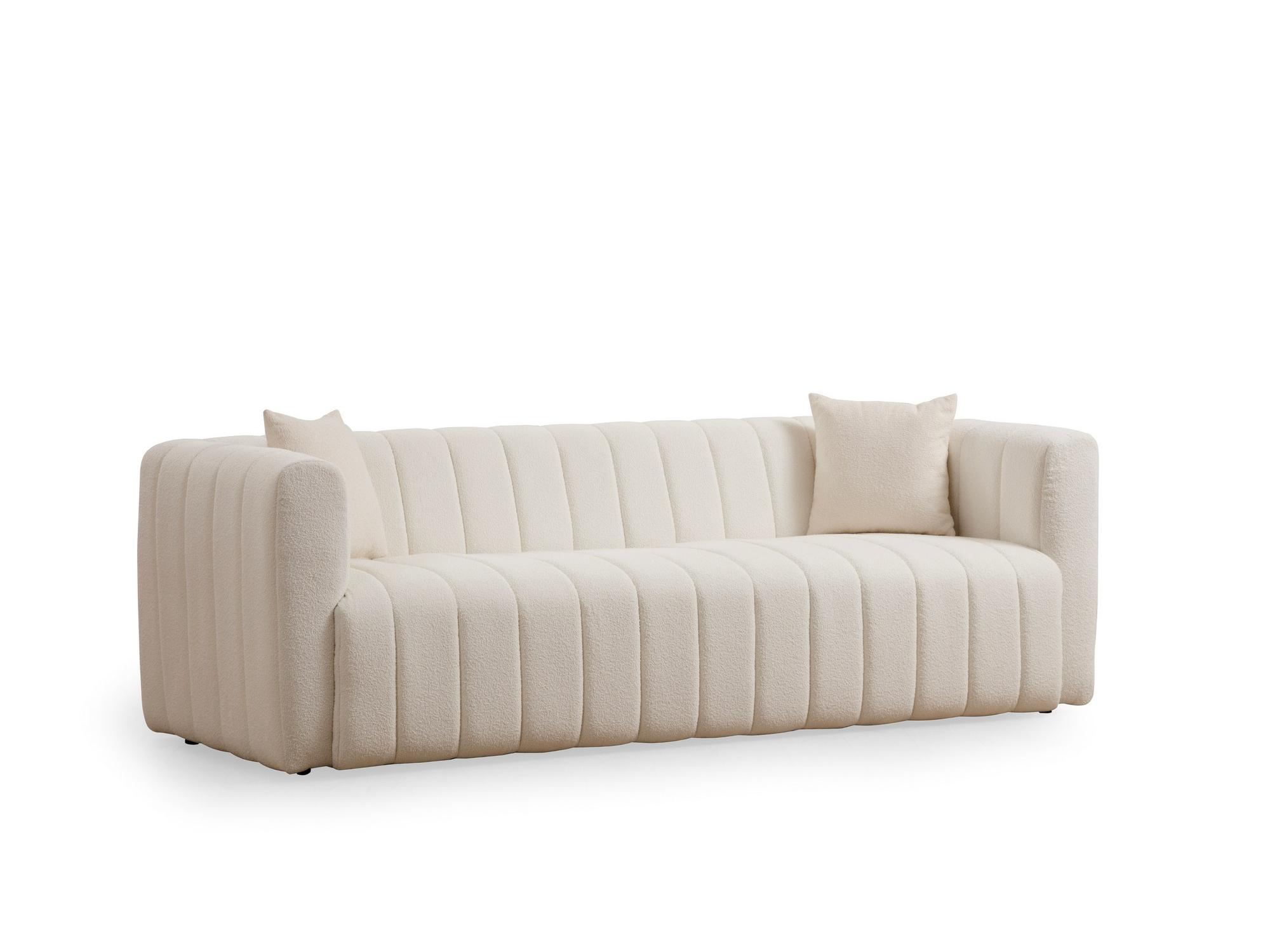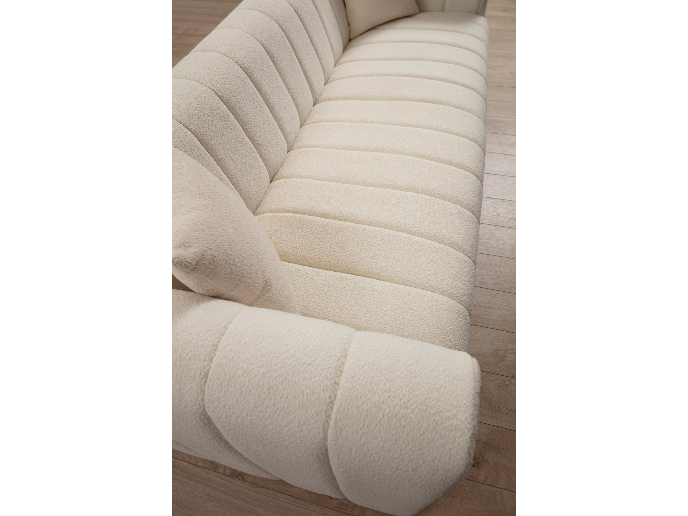 Táto krémová trojsedačka je ideálnym doplnkom do každého moderného obývacieho priestoru, ktorý oceníte pre jej nadčasový dizajn a vysoký komfort. Vďaka kvalitnému bukovému rámu a drevotrieske je pohovka pevná a stabilná, čo zaručuje dlhú životnosť.