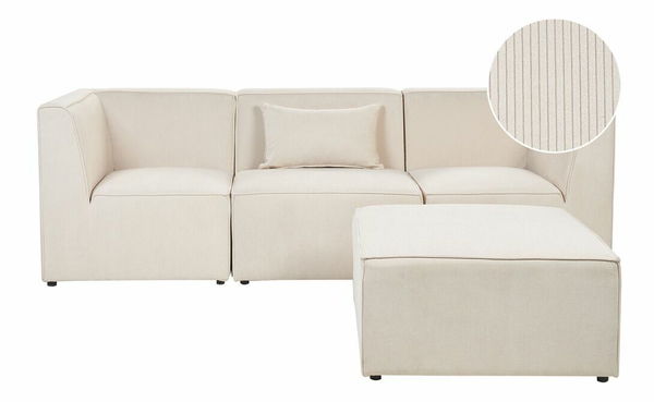 Pohovka trojsedačka s taburetkou Lemia (béžová)