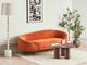Očarujúci dizajn tejto štýlovej pohovky sa stane stredobodom akejkoľvek obývacej izby. Jej tvarovaná silueta s hrubým čalúnením a príjemne zaobleným operadlom vás bude priam lákať sadnúť si a užiť si pohodlie, ktoré ponúka. Pohovka je čalúnená jemne trblietavou zamatovou látkou v nádhernom odtieni oranžovej a vďaka zlatým kovovým nohám vyzerá mimoriadne elegantne.