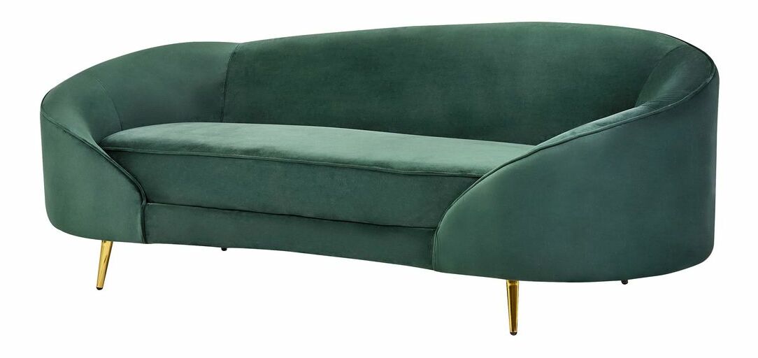 Očarujúci dizajn tejto štýlovej pohovky sa stane stredobodom akejkoľvek obývacej izby. Jej tvarovaná silueta s hrubým čalúnením a príjemne zaobleným operadlom vás bude priam lákať sadnúť si a užiť si pohodlie, ktoré ponúka. Pohovka je čalúnená jemne trblietavou zamatovou látkou v nádhernom smaragdovom odtieni zelenej a vďaka zlatým kovovým nohám vyzerá mimoriadne elegantne.
