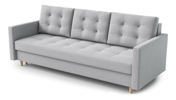 Pohovka trojsedačka Saveta (svetlosivá) s výškou 98 cm a šírkou 224 cm je ideálnou voľbou pre každú obývaciu izbu. Táto pohodlná a elegantná trojsedačka je postavená na pevnej drevenej konštrukcii a 18 mm nábytkovej doske. Nožičky sú tiež vyrobené z dreva a majú prirodzenú farbu. Vďaka výplni sedadla a operadla z bonellových pružín a peny T 30 poskytuje vysoký komfort. Prešívané dizajnové prvky na sedadle a operadle dodávajú elegantný vzhľad. Pohovka má rozmernú plochu na spanie 120x200 cm a biele úložné priestory. S tromi pohodlnými poduškami je táto trojsedačka nielen štýlová, ale aj praktická. Čalúnená zadná strana umožňuje umiestnenie kdekoľvek v miestnosti. Nožičky majú výšku 10 cm a sú vo vysokej kvalite.