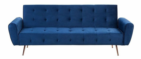 Táto rozkladacia pohovka zútulní každú obývaciu izbu. Je čalúnená na dotyk jemnou a odolnou zamatovou látkou a má hrubú vrstvu penovej výplne pre maximálne pohodlie. Štíhle kovové nohy s lesklou povrchovou úpravou a ozdobné prešívanie jej dodávajú luxusný vzhľad. Pohovku možno jednoducho premeniť na posteľ, čo oceníte najmä vtedy, keď k vám prídu hostia. Praktické bočné vrecko ponúka miesto na odloženie diaľkových ovládačov, časopisov alebo iných drobností, takže všetko potrebné budete mať na dosah ruky.
