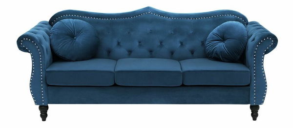 Vylepšite svoj interiér touto elegantnou a očarujúcou pohovkou. Má prešívané operadlo a bočné opierky ozdobené kovovým lemovaním a je skutočne jedinečným kúskom, ktorý pozdvihne vzhľad každého priestoru. Dizajn inšpirovaný retro a vintage štýlom sa hodí do akejkoľvek obývačky či kancelárie. Pohovka je vyrobená z vysokokvalitných materiálov, je neuveriteľne odolná a čalúnená jemným zamatom. Pevné drevené nohy zaručujú stabilitu nábytku. Súčasťou pohovky sú dva vankúše, ktoré majú snímateľné poťahy a dajú sa jednoducho vyčistiť, takže sa nemusíte obávať prípadných škvŕn.