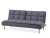Táto trojmiestna pohovka, ktorá kombinuje jednoduchý dizajn a funkčnosť, ponúka pohodlné miesto na posedenie či spánok. Pohovka sa jednoducho zmení na posteľ pre dve osoby a vďaka sklápaciemu operadlu ju možno úplne prispôsobiť vlastným potrebám. Dizajn s tmavosivým čalúnením, štvorcovým prešívaním a drevenými nohami vnesie štipku retro štýlu do akéhokoľvek moderného priestoru.