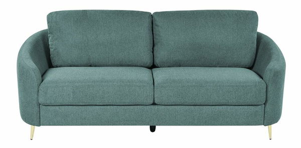 Urobte si pohodlie na tejto jedinečnej 3-miestnej pohovke s oblým tvarom, ktorá vytvorí útulnú atmosféru vo vašom interiéri. Hrubé čalúnené sedadlo a nadýchané vankúše na operadle zaručujú vynikajúci komfort počas sedenia. Zlaté kovové nohy zvýrazňujú jedinečnú farbu čalúnenia a dizajnu pohovky dodávajú eleganciu.