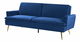 Jednoduchý a moderný dizajn tejto rozkladacej pohovky dokonale doplní zariadenie obývacej izby v akomkoľvek štýle. Počas dňa poskytne pohodlné miesto na sedenie a relaxáciu pre 3 osoby. Večer ju možno využiť ako posteľ, a to vďaka rozkladaciemu systému. Pohovka má jemné zamatové čalúnenie v modernej modrej farbe a tvarované kovové nohy v zlatom prevedení jej dodávajú elegantný vzhľad.
