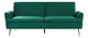 Jednoduchý a moderný dizajn tejto rozkladacej pohovky dokonale doplní zariadenie obývacej izby v akomkoľvek štýle. Počas dňa poskytne pohodlné miesto na sedenie a relaxáciu pre 3 osoby. Večer ju možno využiť ako posteľ, a to vďaka rozkladaciemu systému. Pohovka má jemné zamatové čalúnenie v tmavozelenej farbe a tvarované kovové nohy v zlatom prevedení jej dodávajú elegantný vzhľad.