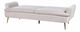 Jednoduchý a moderný dizajn tejto rozkladacej pohovky dokonale doplní zariadenie obývacej izby v akomkoľvek štýle. Počas dňa poskytne pohodlné miesto na sedenie a relaxáciu pre 3 osoby. Večer ju možno využiť ako posteľ, a to vďaka rozkladaciemu systému. Pohovka má jemné zamatové čalúnenie v pastelovej béžovej farbe a tvarované kovové nohy v zlatom prevedení jej dodávajú elegantný vzhľad.
