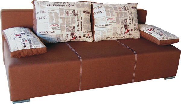 Jednoduchý 3-sed s praktickým využitím. Je čalúnený šenilom s kontrastným prešitím. Na vankúšoch je použitý vzor novín. Štvorica vankúšov sú príjemnou oporou chrbta či rúk a pružiny v matraci sa postarajú o pohodlie pri sedení. Systém Automat zaručuje jednoduché rozloženie, čím vzniká praktická plocha na prespanie. Do úložného priestoru môžete odložiť vankúše či posteľné prádlo. Pohovka je postavená na kovových nohách.