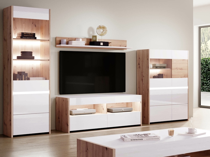 Polica Gubi 11 (Dub artisan + Biely lesk) výška 20 cm je ideálny doplnok do každej štýlovej domácnosti. Vďaka farebnej kombinácii bielej a duba artisan, táto polica dodáva vášmu domovu jedinečný Škandinávsky šarm. Otvorená polička nad televíziou umožňuje vystaviť si vaše obľúbené fotografie alebo kvety. Nábytok je vyrobený z kvalitnej drevotriesky a má ochrannú ABS hranu. Predná strana je vyrobená z fóliovanej MDF dosky. Produkt neobsahuje LED osvetlenie a balík obsahuje 1 kus s rozmermi 24x172x5 cm a váhou 9 kg. S touto poličkou získate praktický a moderný nábytok, ktorý dodá vášmu interiéru štýlový vzhľad.
