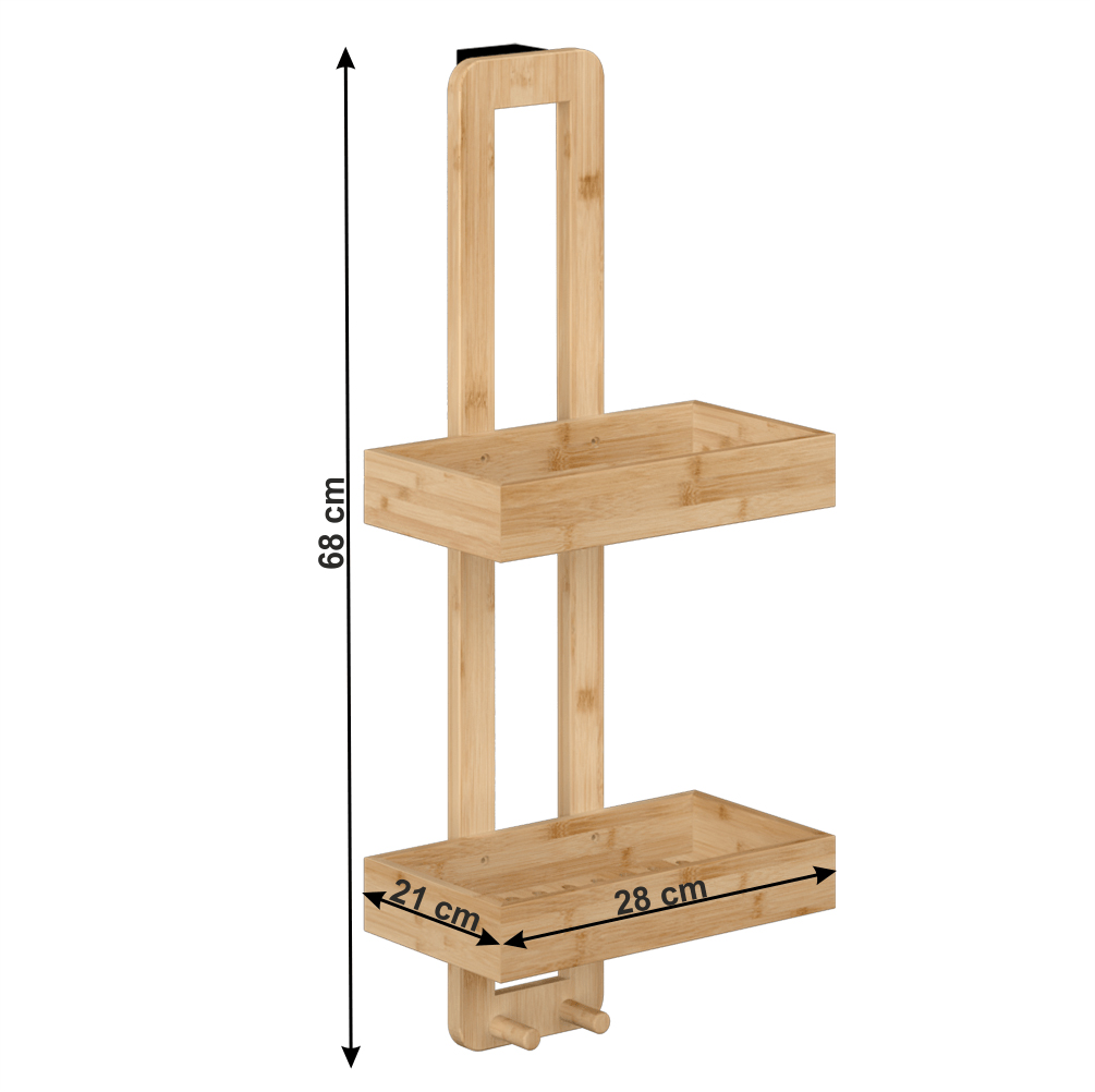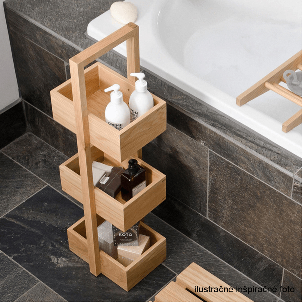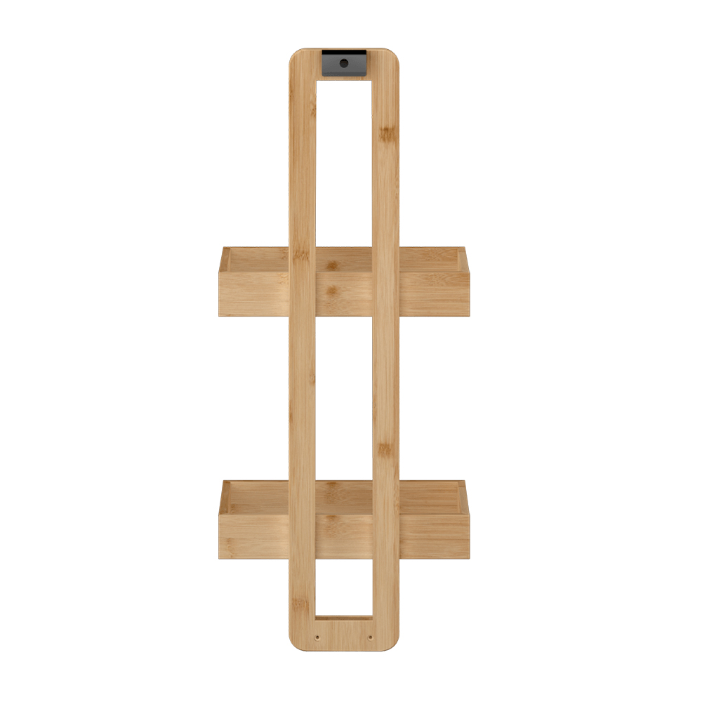 Hľadáte šikovného pomocníka, ktorý by doplnil úložný priestor vo vašej kúpeľni? Závesný kúpeľňový regál Pilli sa na túto úlohu výborne hodí. Prináša praktický úložný priestor v podobe dvoch políc, na uskladnenie hygienických či toaletných potrieb. Zabezpečí, že pred sprchou budete mať všetko pekne pripravené. Vyrobený je z lakovaného bambusu v prírodnom prevedení. Dno políc je s otvormi na odtok vody. Súčasťou je aj držiak, ktorý je z ocele v čiernej farbe. Regál dokážete bez problémov zavesiť na konštrukciu sprchového kúta, či na akýkoľvek iný vhodný nábytok alebo montážny systém. Zariaďte si kúpeľňu, ktorá bude moderná a funkčná.