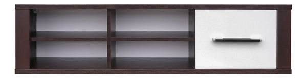 Závesná skrinka ponúka množstvo úložného priestoru. Na pravej strane sú dvierka, ktoré ukrývajú priestor s poličkou.