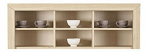 Jednoduchá forma nábytku. Masívny a zároveň subtílny rám korpusu. Jemná kresba nábytku (buk tatra), matné sklá vo vitrínach a zlícovaný s prednými dielmi úchyt vo farbe hliníka. 21 prvkov tvorí systém mezo.