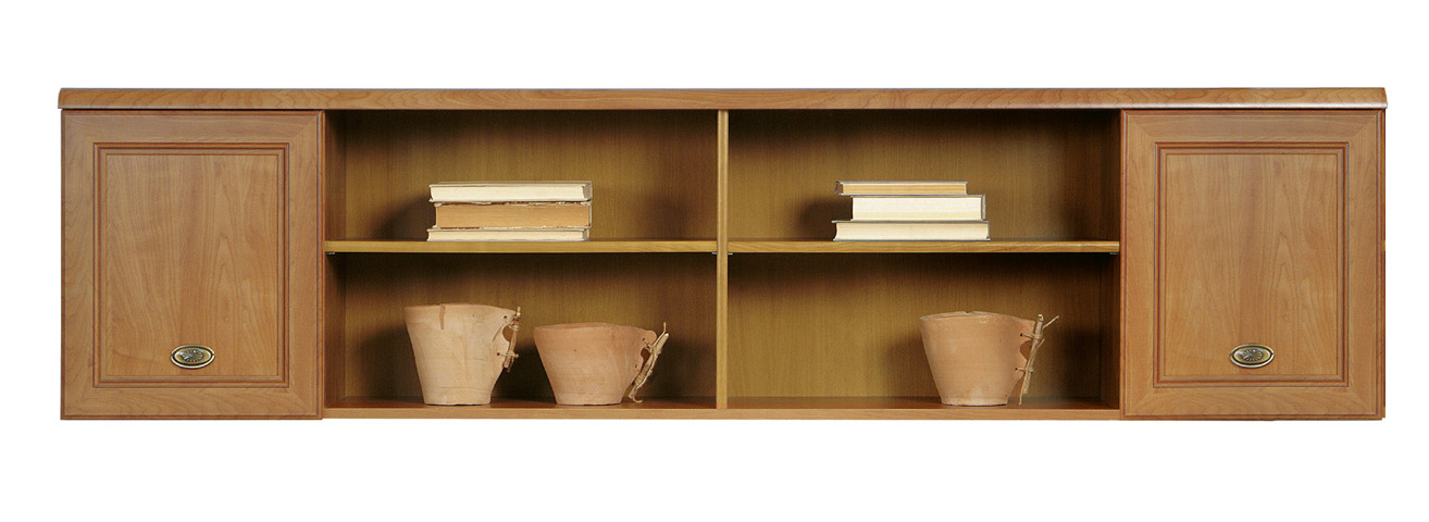 Uzavretá polička v krásnom rustikálnom prevedení, ktorá má skrinky na ľavej a pravej strane a štyri otvorené poličky. Hodí sa do vašich spální, obývacích izieb alebo aj študentských izieb. Umiestnite si do nej vaše obľúbené dekoračné predmety, knižky, CD s hudbou a iné doplnky.