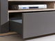 Rovné línie obývačiek sa udomácnili v mnohých domácnostiach a získavajú si stále viac zákazníkov. Zabudované LED osvetlenie v skrinkách dodáva nábytku výnimočný vzhľad a poslúži Vám aj ako samostatný svetelný zdroj. Charakteristickým znakom je reliéfovaná lišta pod osvetlením. Bezpečnostné sklo vydrží omnoho väčšiu záťaž ako obyčajné. Pri rozbití Vám nehrozí poranenie. Vhodný dizajn a kvalitný materiál úchytky uspokojí aj tých najnáročnejších. Zásuvky obsahujú praktický samodoťah a brzdu. Osvetlenie panelov, vitrín a sklenených políc je objednateľné samostatne.