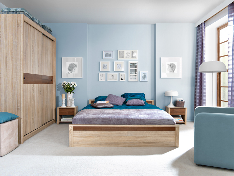 Moderná sektorová zostava Vám zaručí nadčasové zariadenie spálne. Obľúbené farebné prevedenie dreva dub sonoma, je doplnené o elegantné prvky dreva jaseň rochefort. Vďaka tomu nábytok navodí príjemnú atmosféru celého priestoru.